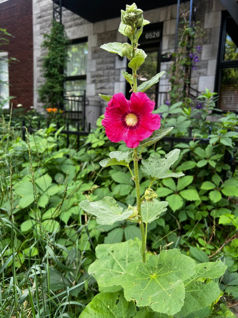 Je fais partie de ta joie qui a mille facettes. La rose trémière s’élève toujours plus haut avec une floraison abondante. Cet espace est aussi le tien chère Chloé.