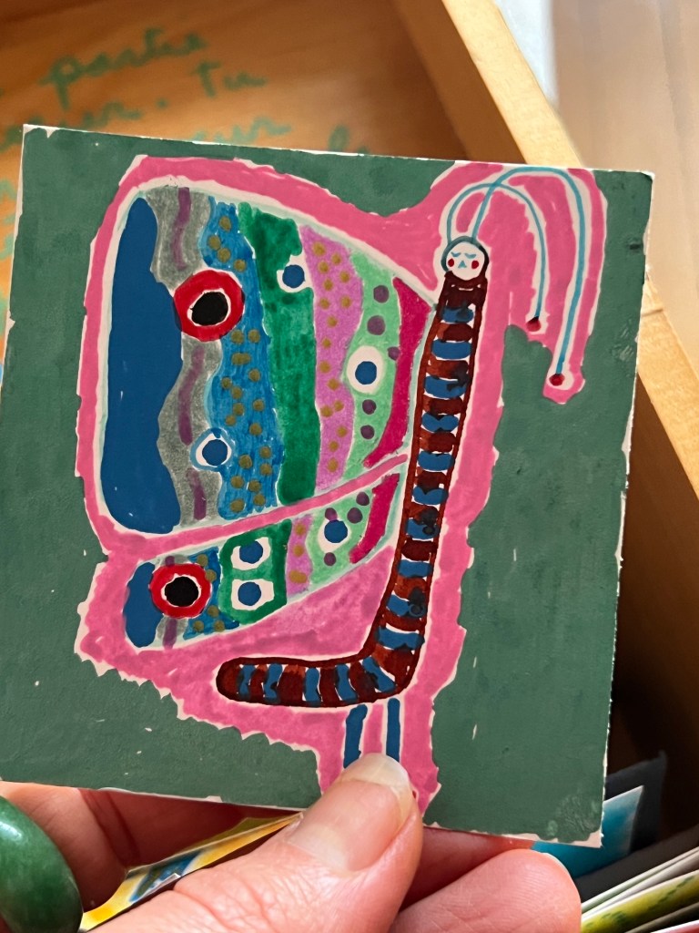 Depuis quelque temps, je crée pour lui de petits dessins colorés que je glisse dans sa boîte à lunch, avec un message écrit à l’endos. Je sentais qu’il avait besoin que quelque chose se renforce dans notre lien et que cela nourrisse notre confiance mutuelle. Grâce à ces petits dessins-mots, je sens que quelque chose a changé : il se dépose mieux avec moi.