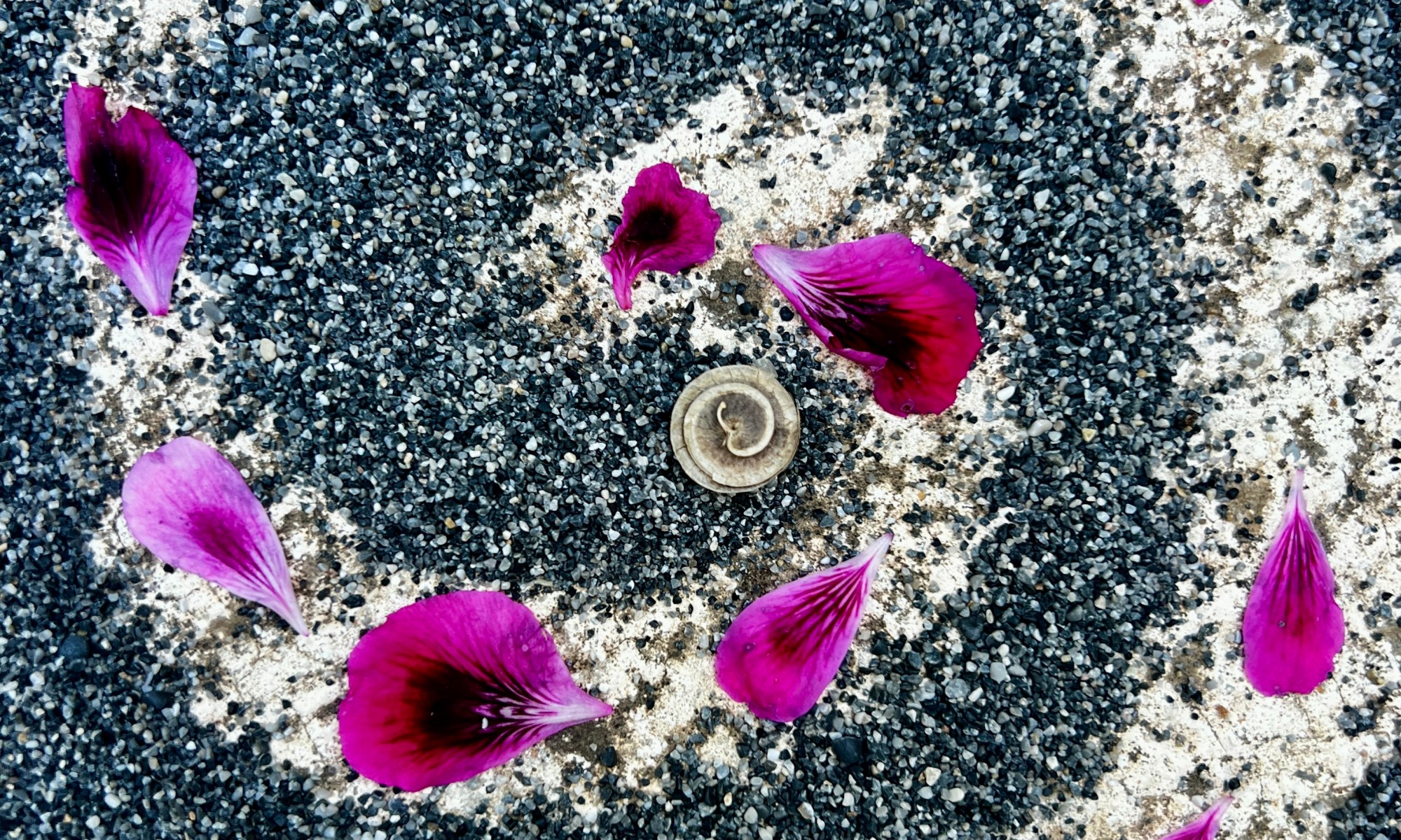 Sable grisRamassé lors d’une randonnéeEn bord de mer.PatienceLuiMoi Le momentL’inspiration Les autres éléments.  Cosses noirs Pendues à un arbre Inconnu Aperçues en traversant un village.Intérieur alvéoléC’est tellement beau,J’arrête la voiture.  Plumes de vautours fauves.Les montagnes crétoises Regorgent de trésors Qui maintenant Nous habitent. Pétales de géraniumsQue la source de Meronas Abreuve Sous les chênes centenaires. ... J’ai senti la présence du mouvement, souple et concentré …